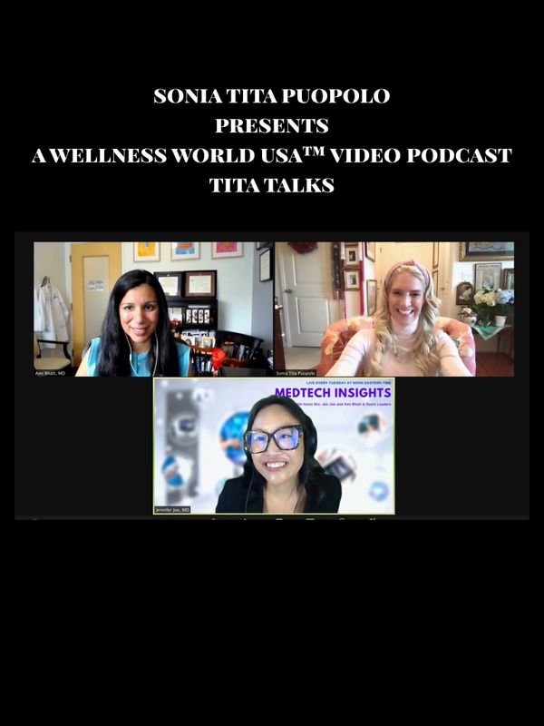 SONIA TITA PUOPOLO PRESENTS A WELLNESS WORLD USAβ’, INC. VIDEO PODCAST, TITA TALKS: THE WELLNESS CORNER Hosted by PROFESSOR SONIA TITA PUOPOLO, AMI BHATT, MD, AND JENNIFER JOE, MD. This uplifting show includes a panel with brilliant minds from multi-cultural and diverse backgrounds to discuss relevant, timely wellness and selfcare topics within WELLNESS WORLD USAβ’'s 4 pillars of a healthy lifestyle: exercise, nutrition, rest/healing, and mindfulness/meditation. This is a platform that provides solutions and offers insights into the wellbeing challenges of today. We must not only raise awareness about the importance and impact of wellness and selfcare (preventive health practices), but also, discuss the value of credible, evidence-based solutions-it is about furthering the understanding of a holistic integrated approach to wellbeing. The Wellness Corner is that show. We are currently experiencing the greatest global transformation of our lifetime. This grand transformation permeates the βWellbeingβ of every aspect of humankind. Wellness and Selfcare is at the forefront of this paradigm shift and is a priority and must have for humankind. The potential of the democratization of wellbeing, wellness and selfcare is now a reality. Yet, it is up to consumers to become informed and understand the importance of selfcare as relates to not only how it benefits one's role in civil society, as a global citizen, but how each one of us collectively impact the betterment of the worldwide community. We are delighted to bring to you The Wellness Corner from Boston that will help to build bridges for your benefit. We will discuss the importance of science and evidence based preventive practices as safer lifestyle choices as you begin to form your daily wellness and selfcare practices. Why is a holistic integrated approach to wellbeing so important? How can we together learn more as we look at the healing benefits of wellness and selfcare modalities (preventive practices) like yoga, meditation, or plant-based diets? In each episode, Ami, Jen and I will not only discuss how to improve and ameliorate the long-term consequences of the COVID-19 Pandemic and Variants, but also, how to live a happier, and healthier life. We look forward to having special guests join the dialogue. We believe the aftermath hasnβt even begun as people are still rattled and a complete change in lifestyle is happening. In fact, the Global Wellness Instituteβs December 2021 report, The Global Wellness Economy: Looking Beyond COVID shows us that the βCOVID-19 experience has sparked some major shifts in how consumers understand, experience, and expect wellness.β Furthermore, with βSelf-care for self-preservation and survivalβ as one of the shifts and βPrevention as a lifestyle and a public health priority,β as another, they make it clear that, βWellness and science must move toward each together.β I would like to remind our worldwide audience to watch MedTech Insights with Dr. Jennifer Joe and Dr. Ami Bhatt, their interactive Talk Show that can be viewed Tuesday, 12PM Eastern Standard Time (EST) twice a month on LinkedIn. Also, at your convenience, watch Tita Talks, https://titatalks.com. For more information, please go to https://wellnessworldusa.com. Follow us on Instagram @wellnessworldusa, @titatalksofficial, @welovetitatalks, @soniatitapuopolo and follow Dr. Jennifer Joe on LinkedIn and Twitter @JenniferJoeMD and Dr. Ami Bhatt on LinkedIn @DrAmiBhatt and Twitter @AmiBhattMD.