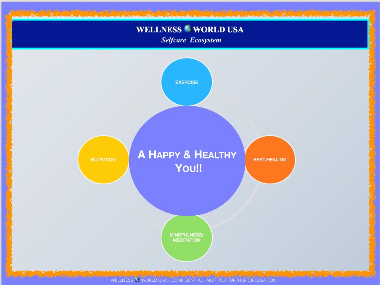 At WELLNESS WORLD USA™, INC., we believe that true selfcare is built upon the foundation of four essential pillars of a healthy lifestyle: exercise, nutrition, rest & healing, mindfulness & meditation. This balanced approach is our formula for achieving health, happiness, and longevity.